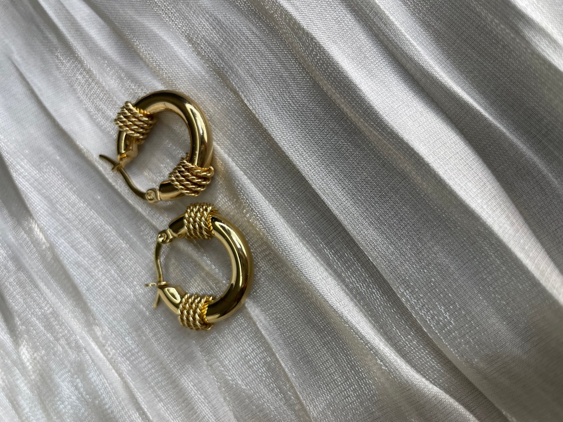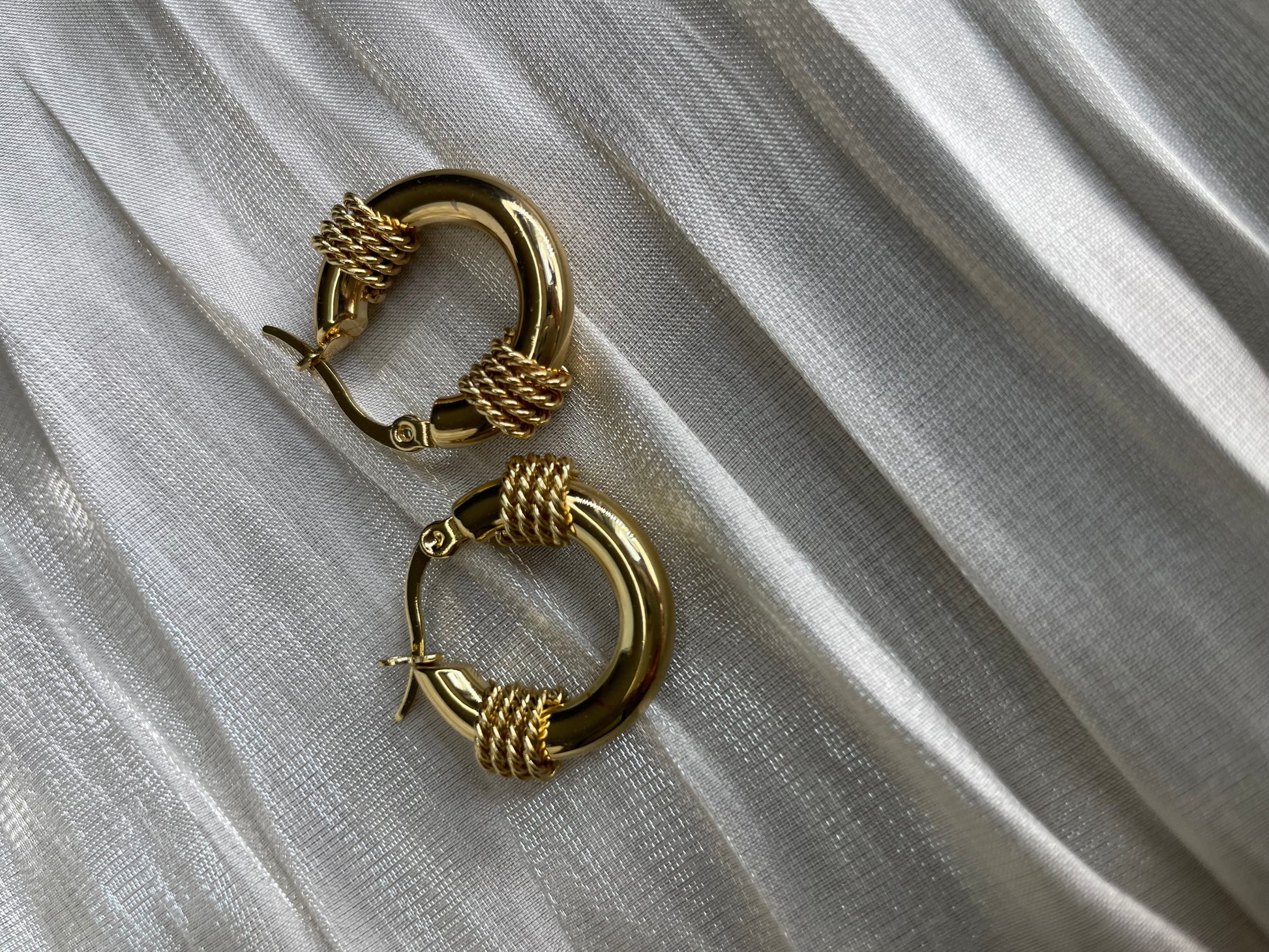 Boucles d'Oreilles Dorées Créoles Epaisses Avec Multi Anneaux Fines Torsadés. Tous nos produits sont fabriqués en acier inoxydable, un matériel qui résiste à l'eau et au temps